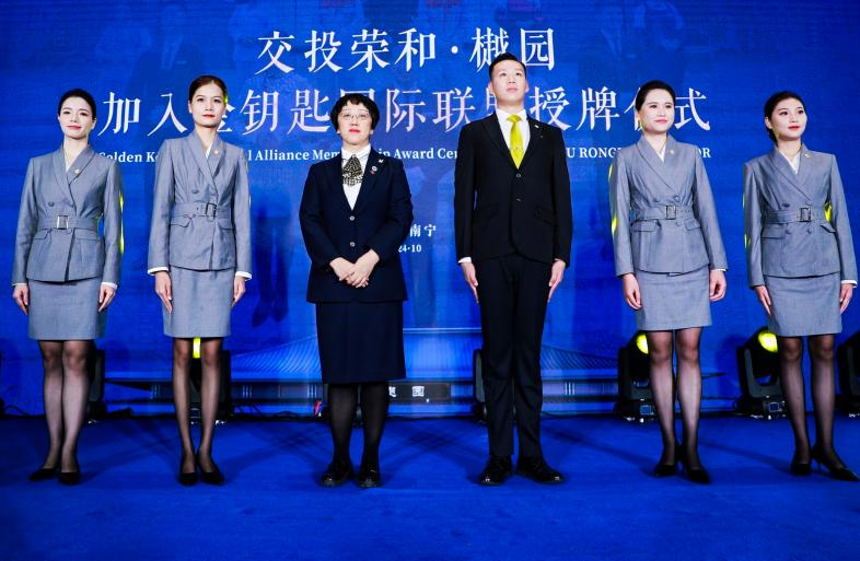 10月26日(周六)上午,以“荣臻之境 尊享非凡”为主题的交投荣和·樾园加入金钥匙国际联盟授牌仪式,在交投荣和·樾园营销中心圆满落幕。正式宣告交投荣和·樾园项目(以下简称:樾园)加入象征全球服务标准的顶级联盟。在这荣耀时刻,金钥匙国际联盟、广西荣和集团、荣和服务集团、交投地产、樾园业主家人以及南宁各大知名媒体、房产KOL齐聚一堂,共同揭幕荣臻系高端定制生活服务新里程。