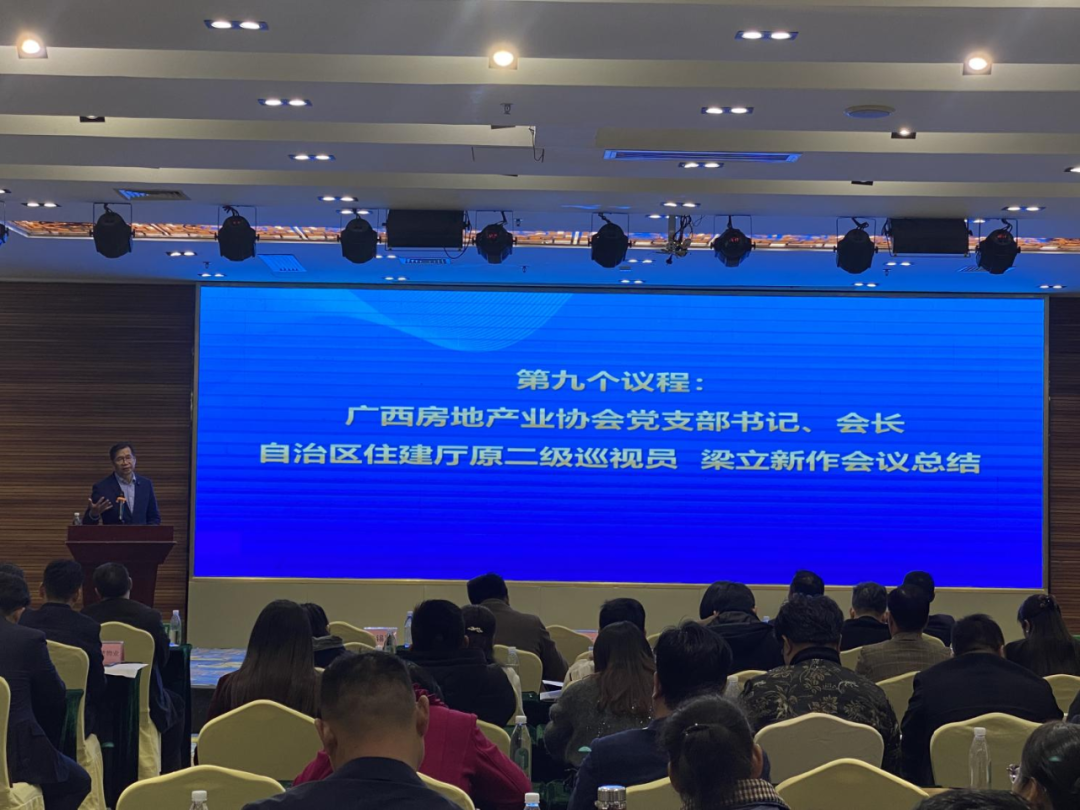 最后,梁立新会长做会议总结讲话提出,一是在加强提高协会自身建设方面,要转变观念,注重工作实效,进一步发挥协会各专委会的桥梁和纽带作用,积极拓展各专业委员会的发展空间;二是在加强服务会员的深度和广度方面, 要积极作为,提高服务能力,改进服务方式,从会员的实际需求出发,做好各项服务工作,切实解决行业、企业需求,提升会员企业获得感;三是在推动行业高质量发展中,向新而生,顺势而为,创新驱动,为实现协会第十届理事会5年发展规划积极发挥作用,作出贡献;四是凝心聚力、携手同行,支持和帮助全区发展稳、实力强、信誉好、品质优的房地产企业、物业管理企业、评估机构、经纪机构、白蚁防治机构及关联供应链企业深耕广西市场。深入推动好房子、好小区、好企业“三好”建设,不断满足老百姓对美好生活的向往成为协会服务高质量发展的动力。
